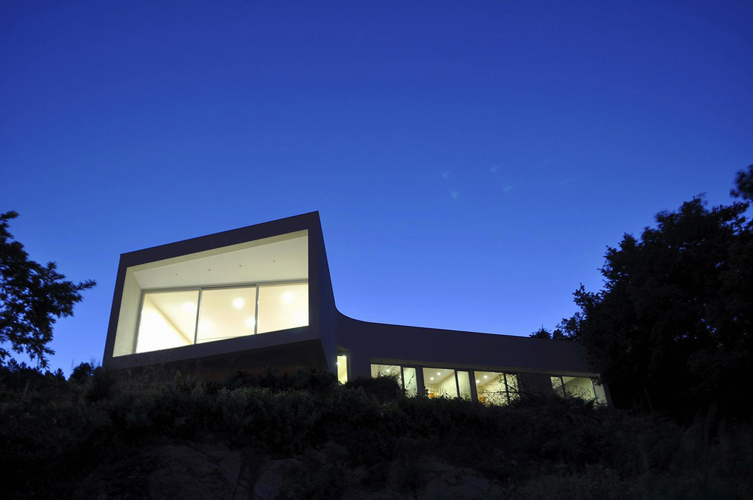 Overlook house is a Y-shaped single family residence that appears as a large window overlooking the landscape. We drew an organic whole, composed of three bodies, which extends to the ground, searching each of the volumes the best orientation, solar and landscape, ending itself, the different valences of the house. A “Y” where the point of intersection of the arms, is both the entry and distribution, separating the public of the private areas.